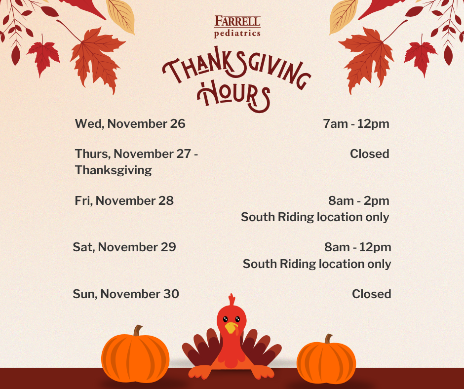 Covid & Flu vaccines have arrived and are recommended for everyone 6 months and over. We are offering Saturday flu vaccine clinics at our South Riding location. You can schedule your child’s flu appointment online or by calling our office. Covid vaccine appointments must be made by calling our office.